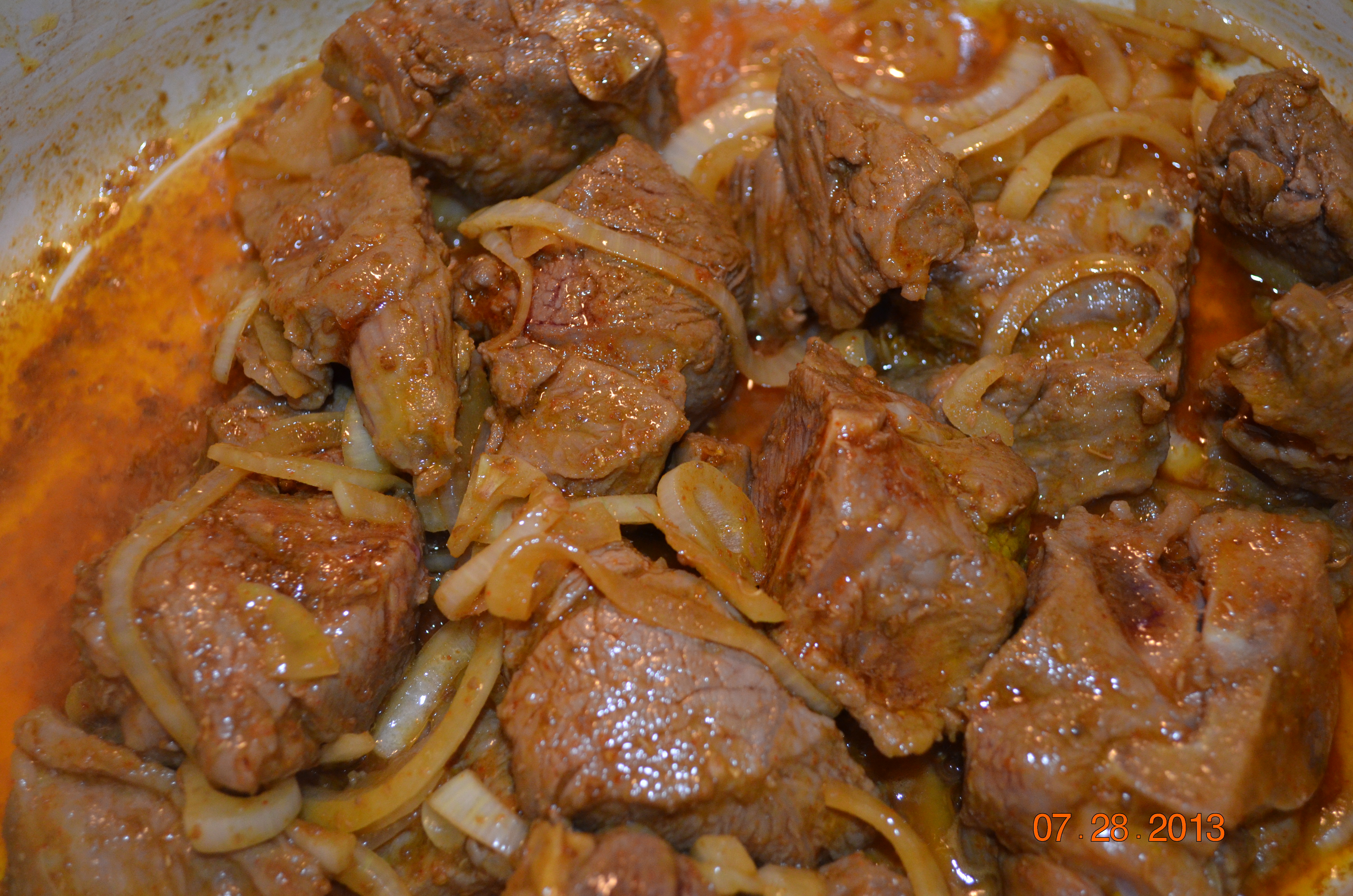 The curry will darken and the meat should be tender and fall apart easily. I prefer to eat this with pita bread. However, roti, chappati, or steamed basmati rice is good, too.