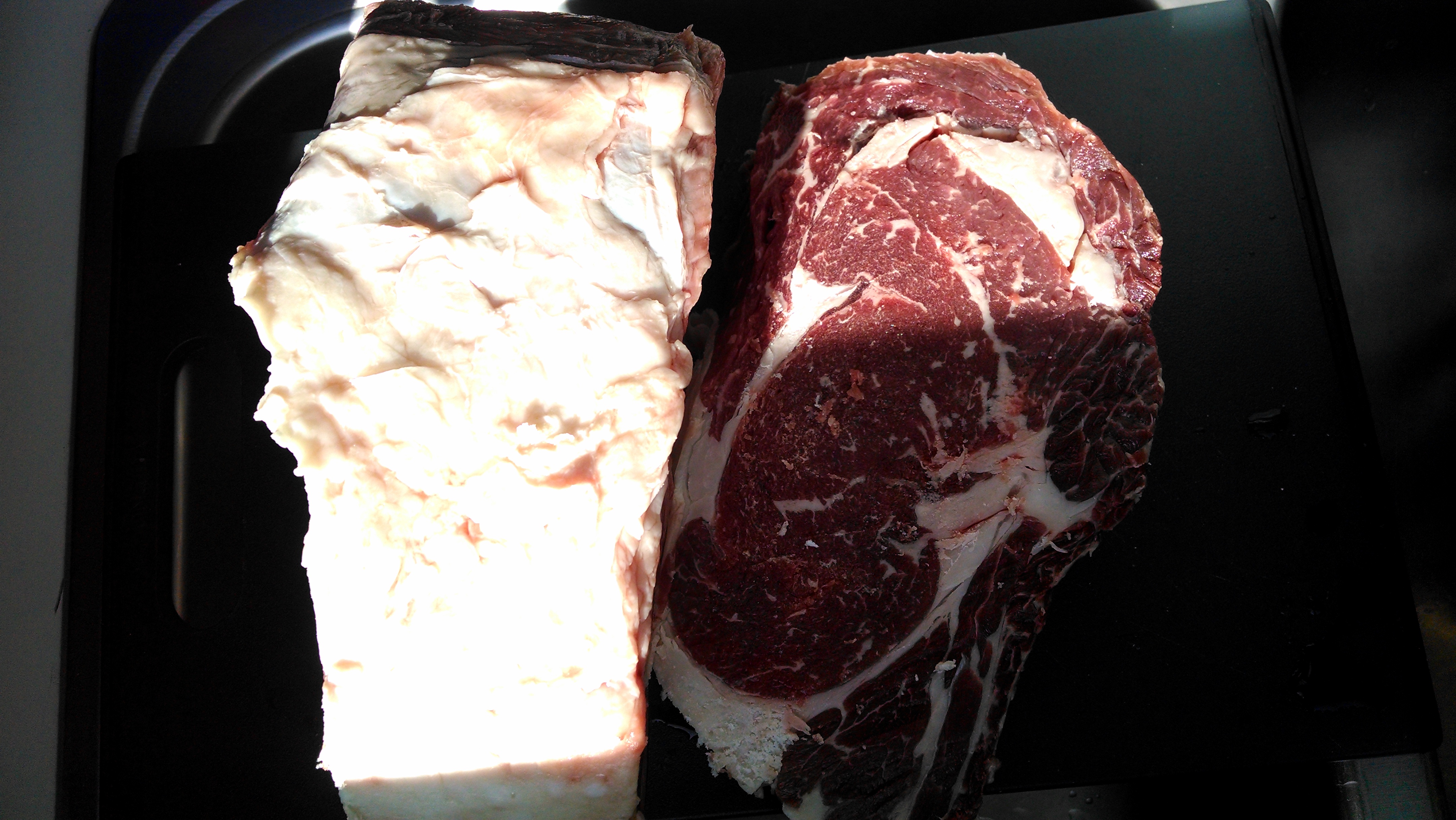 Prepare the Rub: Mix Kosher Salt, Black Pepper, & granulated Garlic. Apply generously to the meat.