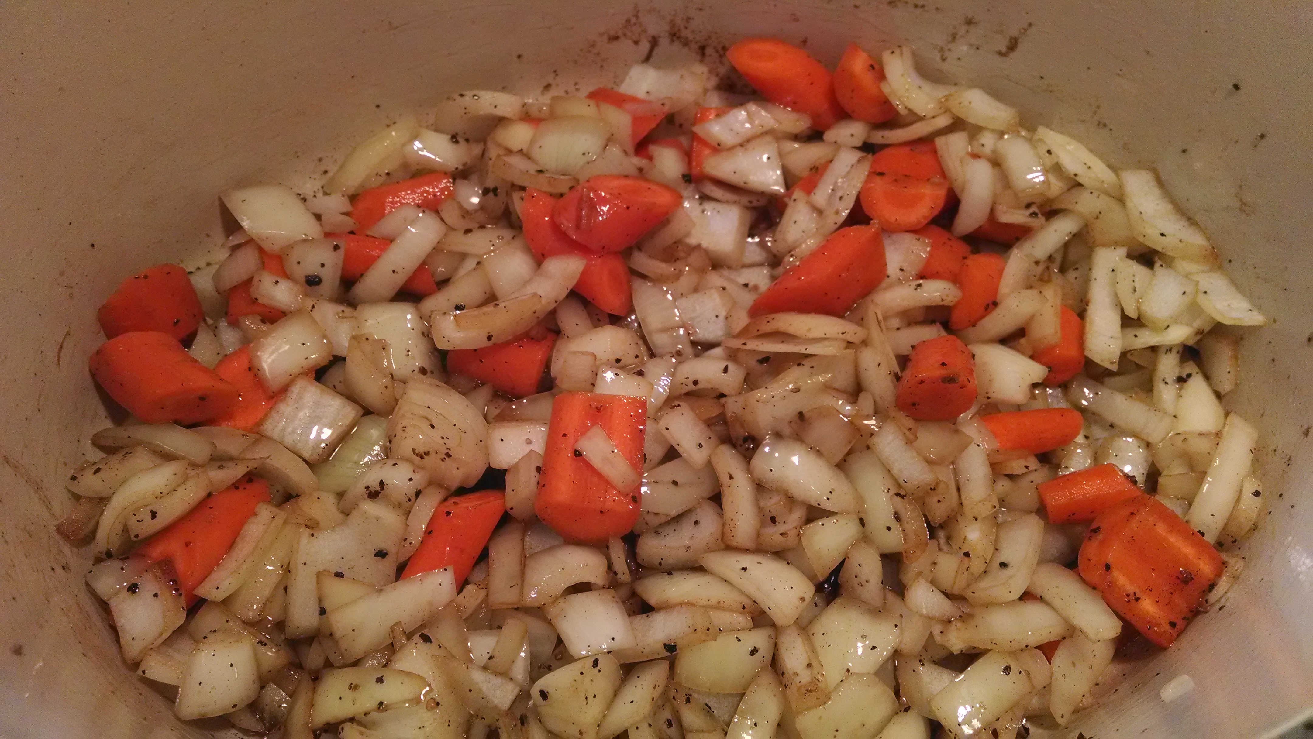 Add the chopped Onions & Carrots to the pot.