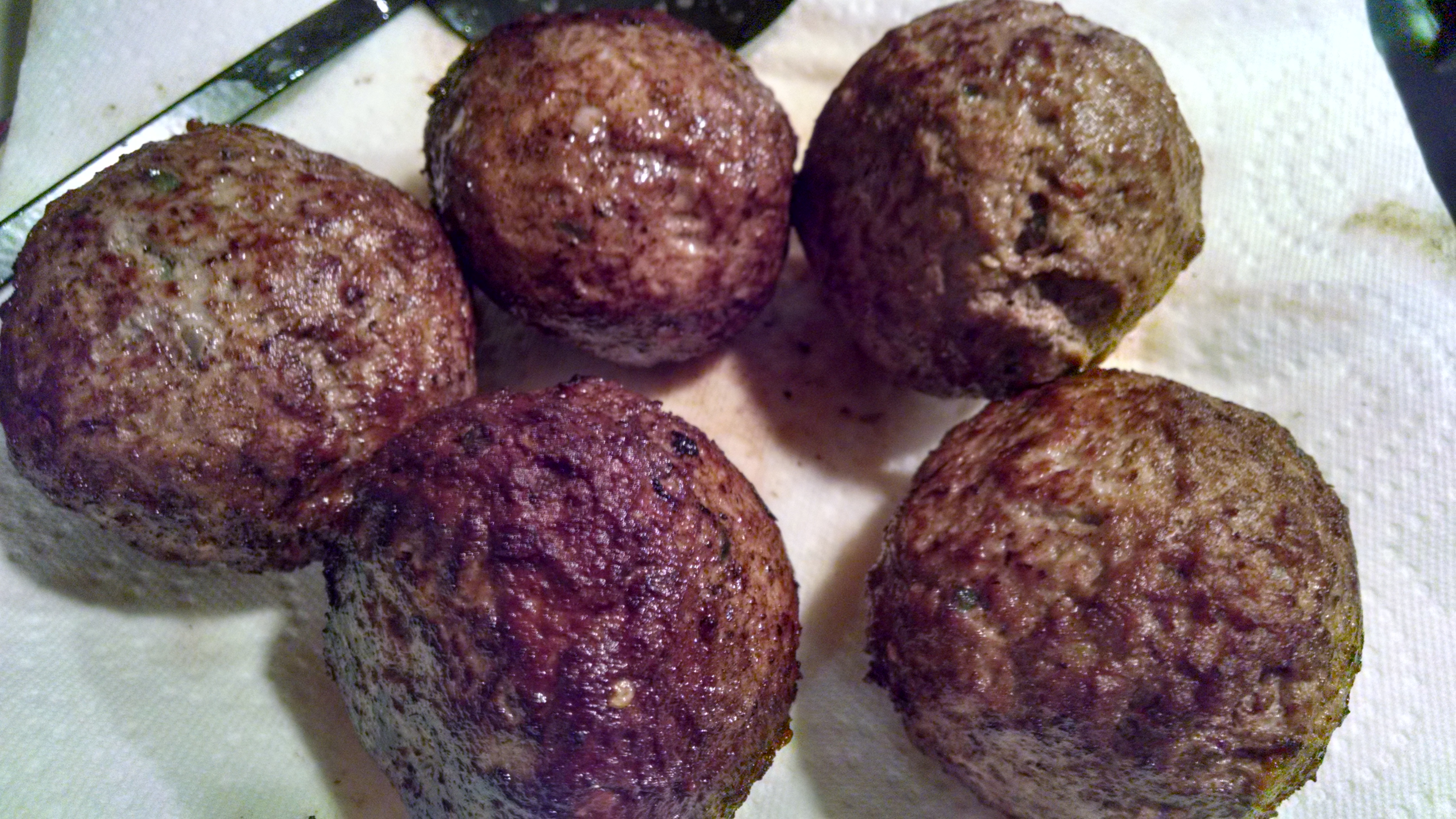 Fry in hot Canola Oil. Roll the kofta around to get a nice dark crust – about 30 seconds per side.