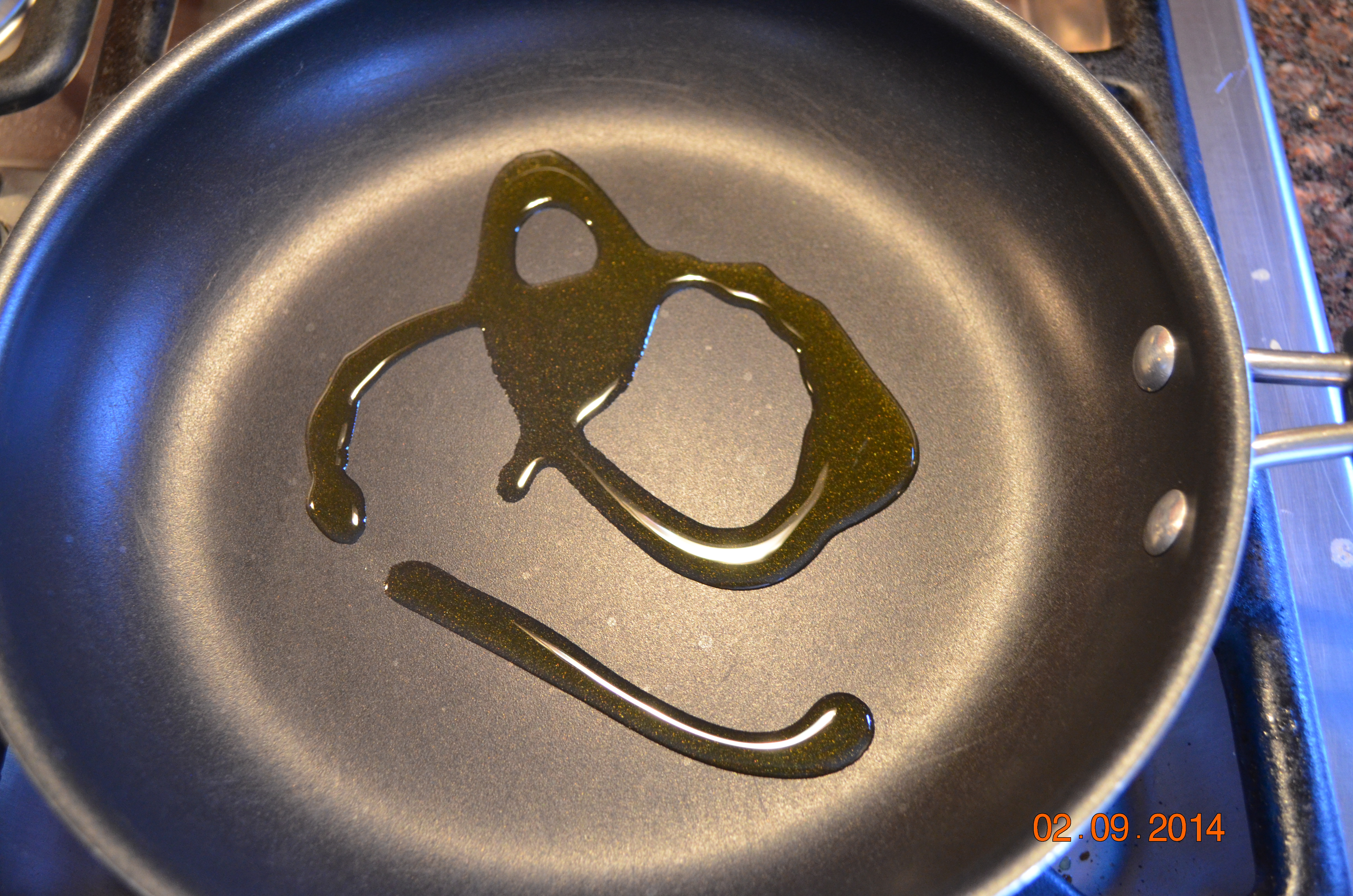 Heat a non-stick skillet on medium high with the Olive Oil. Add the diced Bell Pepper and Chili.