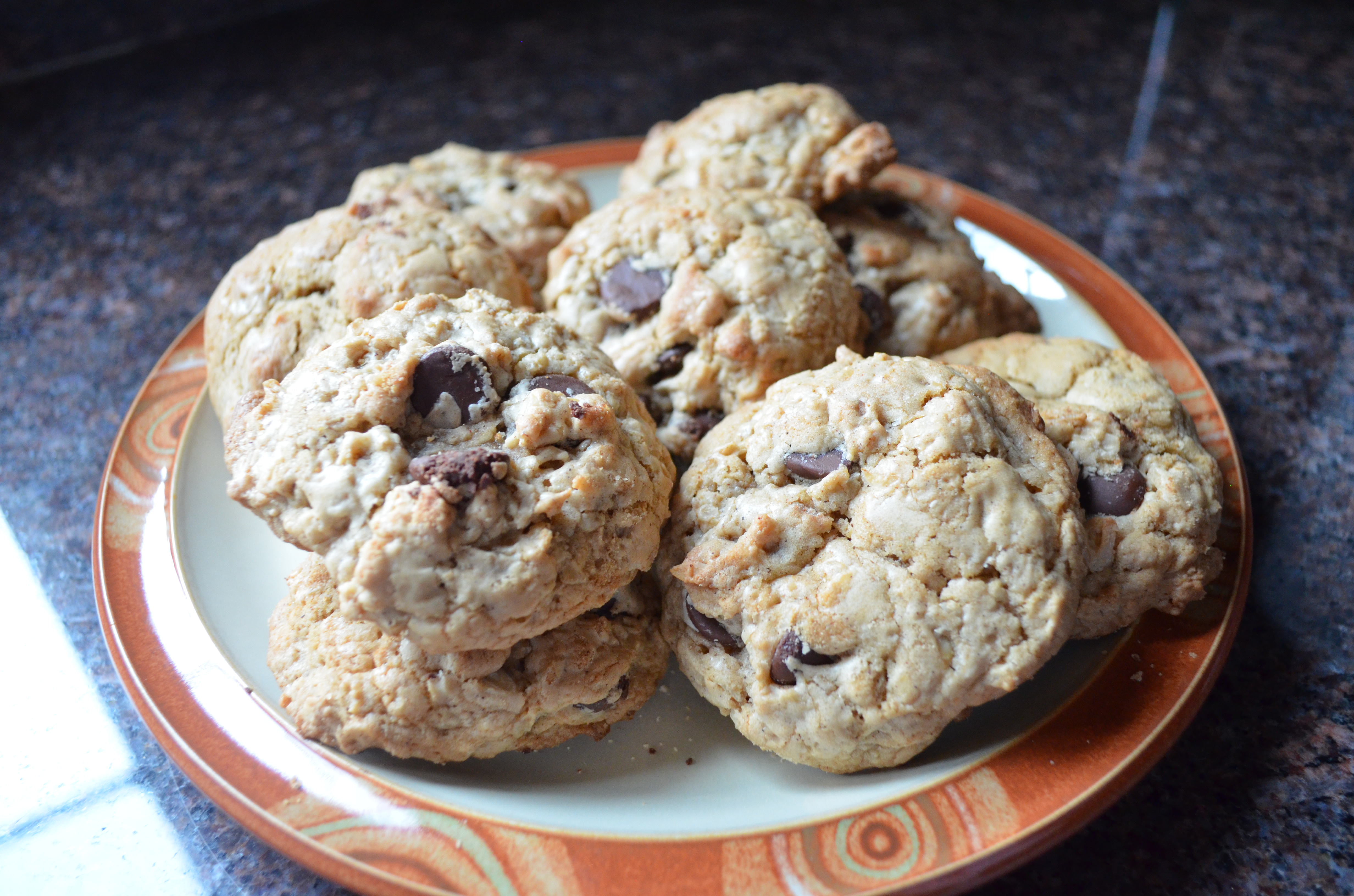 These cookies are a meal in themselves. Okay, I’m gonna attempt to justify their inclusion in every and all diet plans. Dark chocolate = antioxidants (that’s a given to every chocoholic). Oats – doesn’t every diet have oatmeal as a staple for energy? Coconut, I believe the new health fad is fat from coconuts are good/healthy in some way. But hey! Look at that, we’ve made such a delicious cookie into a healthy cookie.