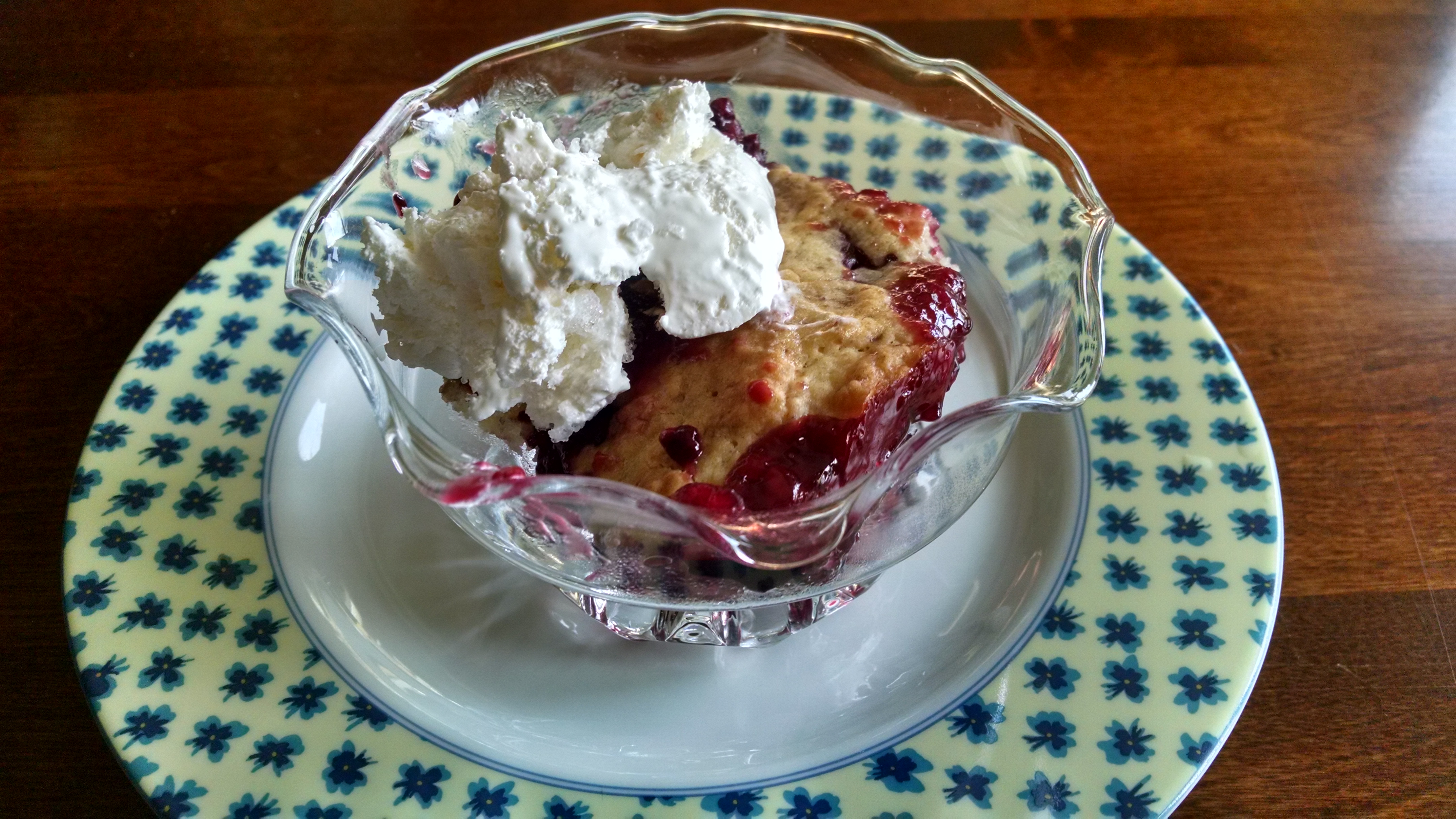 After doing my research on this recipe I came upon two schools of thought. The first group believe that the batter goes in the baking dish first followed by the fruit. The other group believe the opposite. I don’t know if there is a difference in taste, but there is in looks. I’m just used to having a buttery crust on top and fruit on the bottom so that’s how this recipe played out.