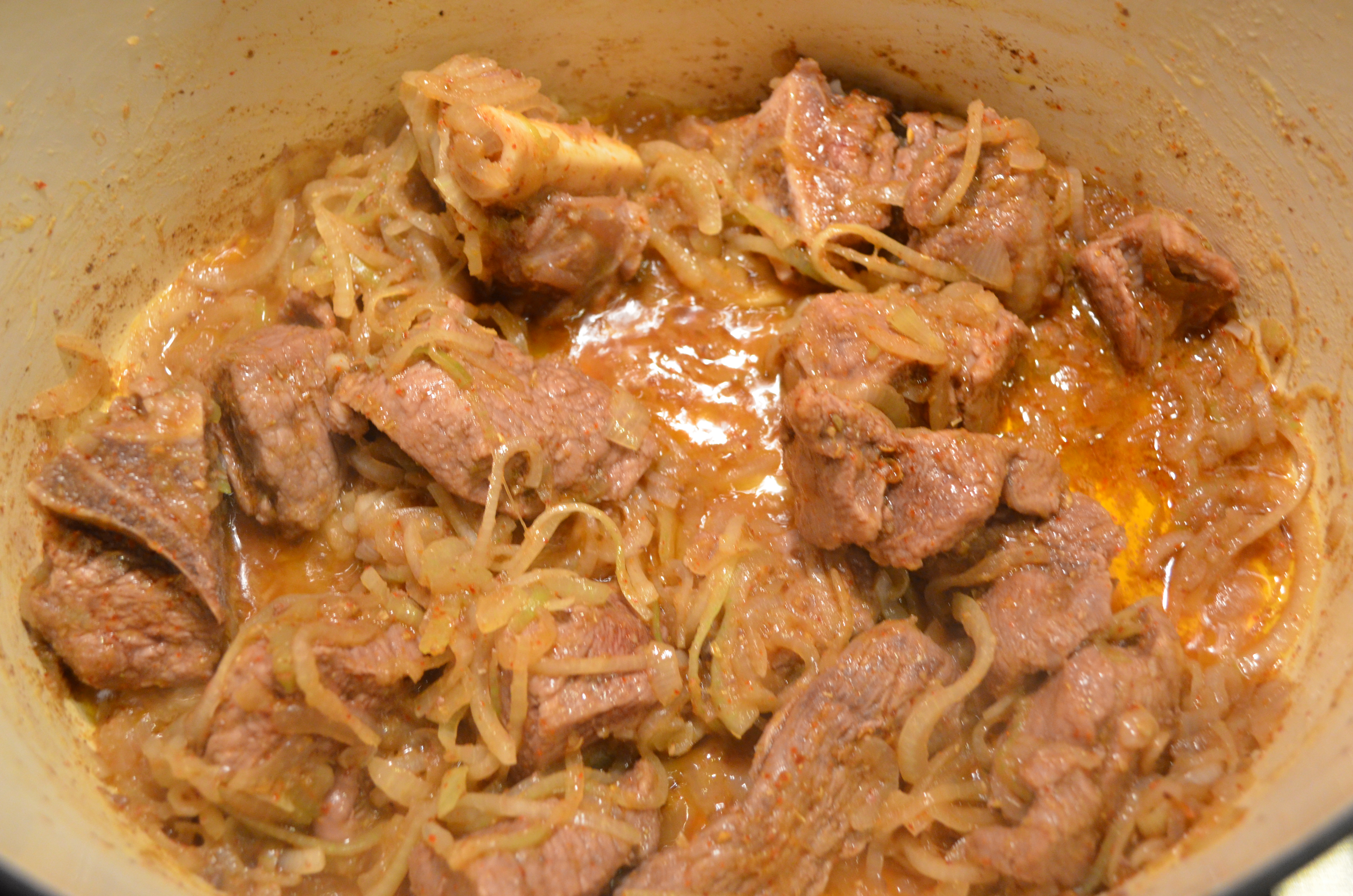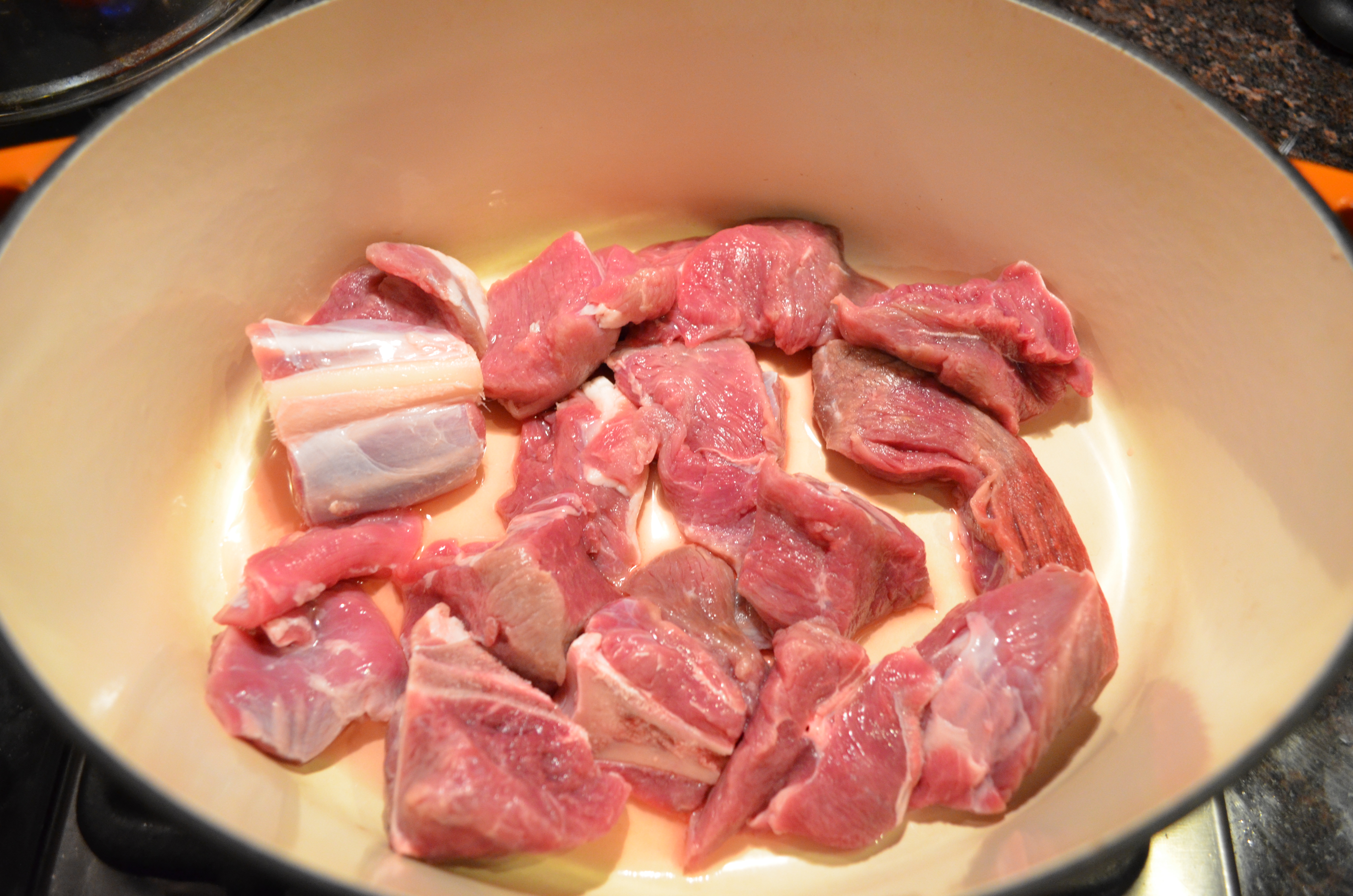- 1 1/2 – 2 lbs of Lamb (shoulder or leg cut into 2″ cubes)