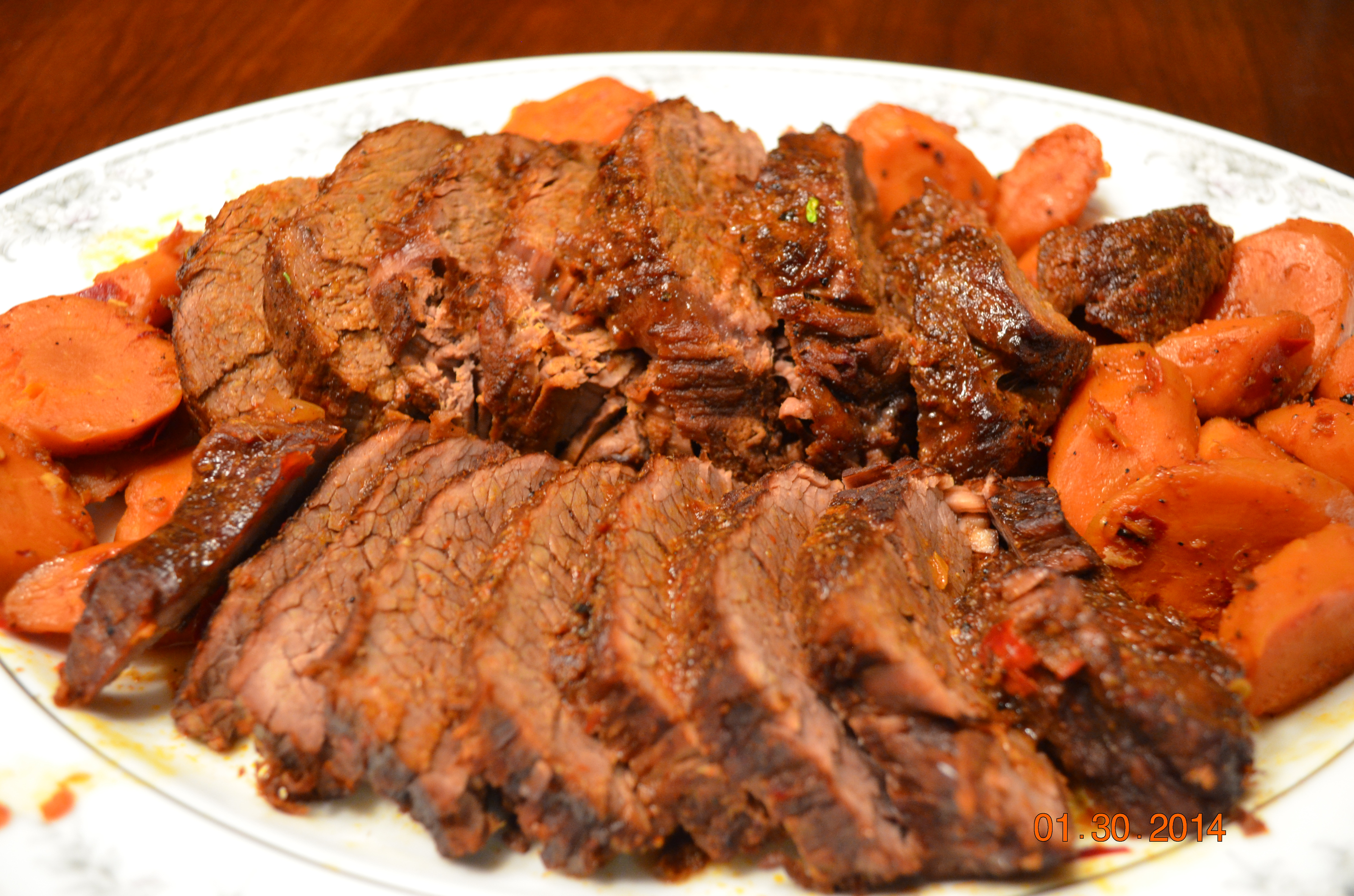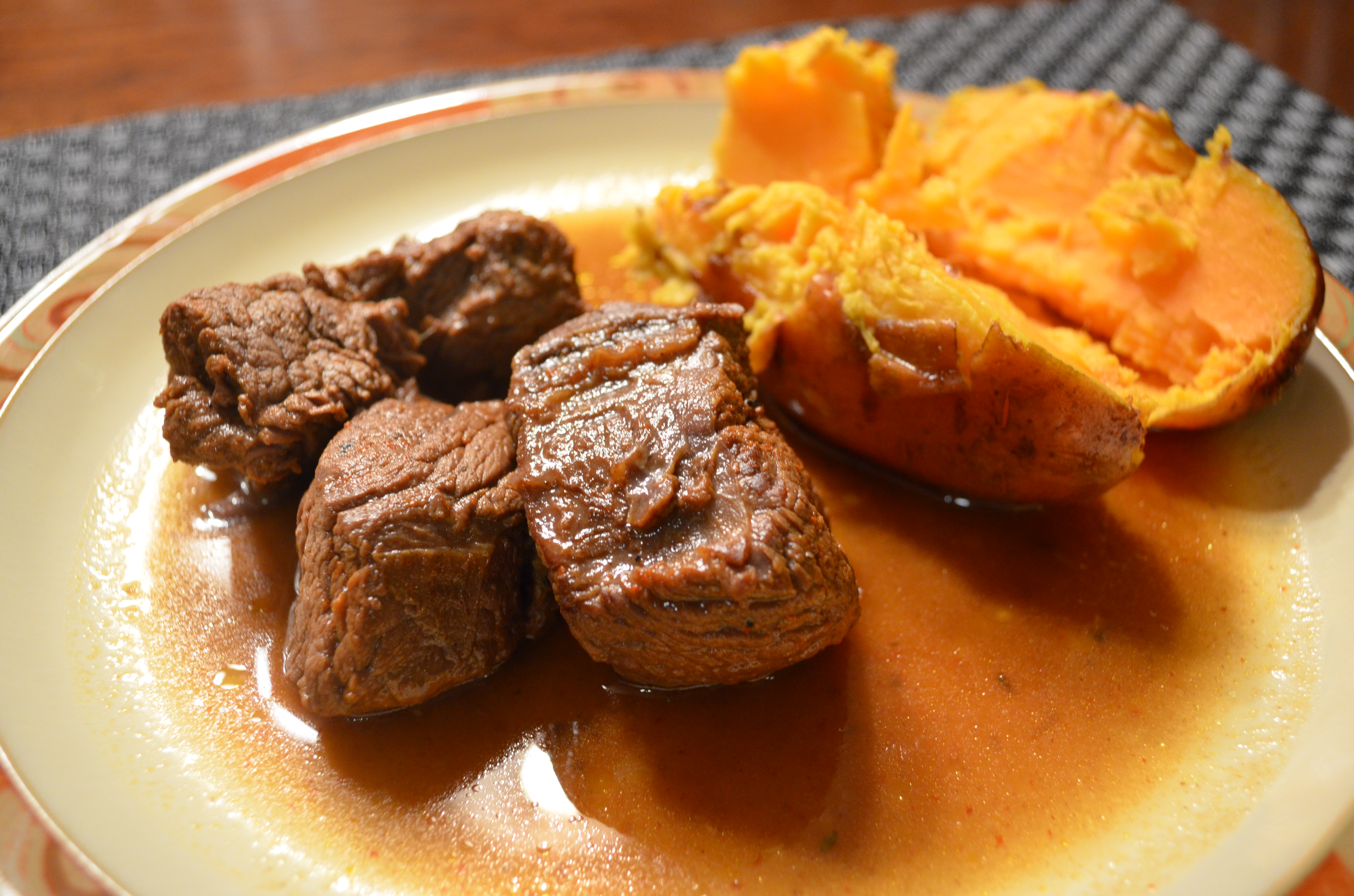 I’m slowly cooking my way through the moose we’ve got in the freezer. Though, the only way I can deal with this meat is by brining it first. It’s the smell that gets me every time and no matter what you braise it in, a brine is first needed to cut the scent and breakdown the lean muscle in order to render a more moist (er, moister) meat. I did a braised moose before, but was unhappy with the results. Sure it tasted great, but underneath the red wine, there was that subtle hint of gamey-ness that sort of turned my appetite.