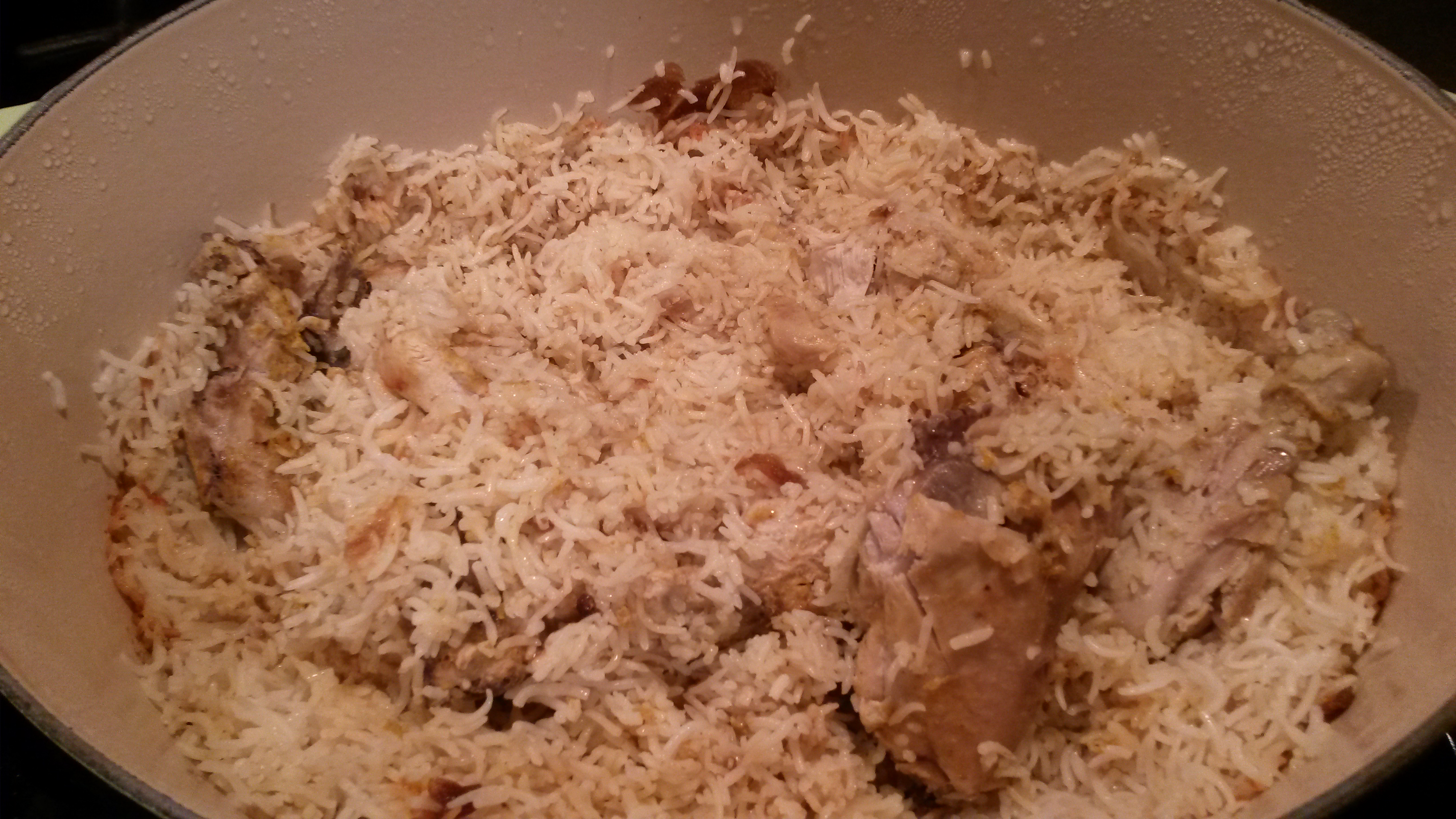 Alright… Now that you’ve got all the jokes and snickers out of you let’s talk about this biryani. Dum is a technique where you allow the dish to cook in its own steam. So when your mother rattles off a recipe and ends it with “…and put the pot on dum for 20 minutes,” it means cook on low heat with the lid on. However, as you will read here, the dum in this recipe is going to be baking. You can keep the pot on the stove top for the entire cooking process, but I don’t know how long you would cook it on low heat – so you’re taking your chances with that way. Read the rest of this entry